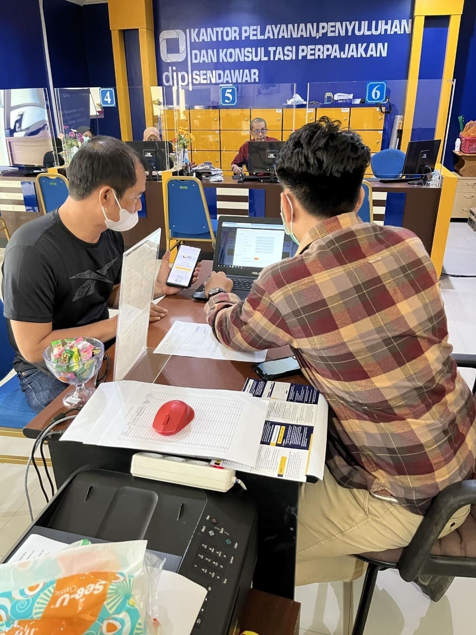 Yoga, petugas KP2KP Sendawar memberikan layanan konsultasi kepada Paul Stelson secara langsung. Yoga menjelaskan apa saja yang harus dilaporkan dalam Surat Pemberitahuan Pengungkapan Harta (SPPH).