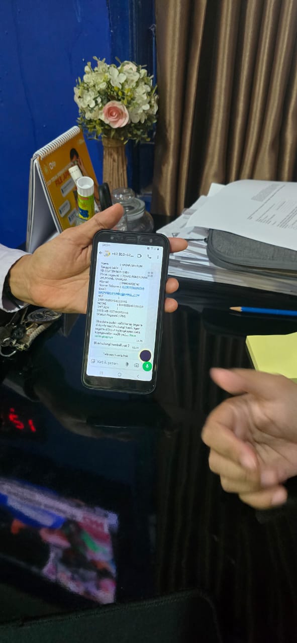 Namun karena merasa ragu dengan permintaan informasi yang tergolong sensitif, ia memutuskan untuk tidak membalas pesan dan memilih datang langsung ke kantor KP2KP Takalar untuk memastikan kebenarannya.