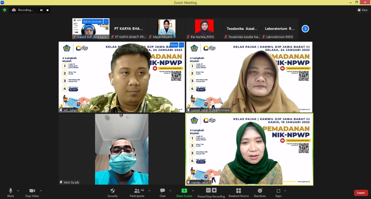 Kantor Wilayah Direktorat Jenderal Pajak (DJP) Jawa Barat III menyelenggarakan Kelas Pajak bagi 46 Wajib Pajak Orang Pribadi yang terdaftar di Kantor Pelayanan Pajak (KPP) Pratama Ciawi. Kelas Pajak yang dilaksanakan secara daring ini membahas Kebijakan Pemadanan Nomor Induk Kependudukan (NIK) menjadi Nomor Pokok Wajib Pajak, Kota Bogor (Selasa, 24/1).