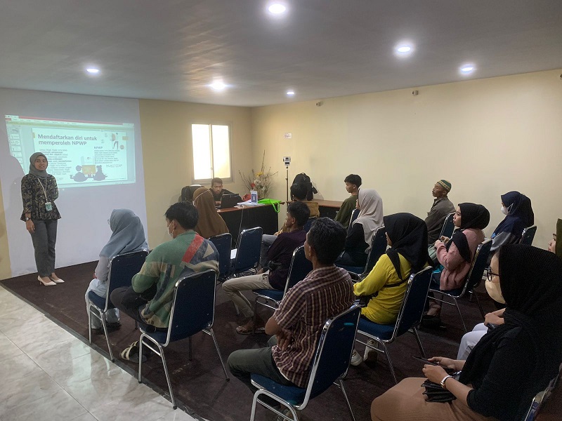 Asisten Penyuluh Pajak Kantor Pelayanan Pajak (KPP) Pratama Kolaka membuka kelas pajak mengenai kewajiban sebagai pemilik Nomor Pokok Wajib Pajak (NPWP) Baru kepada wajib pajak yang baru mendaftarkan diri di ruang aula KP2KP Rumbia (Jumat, 10/2).