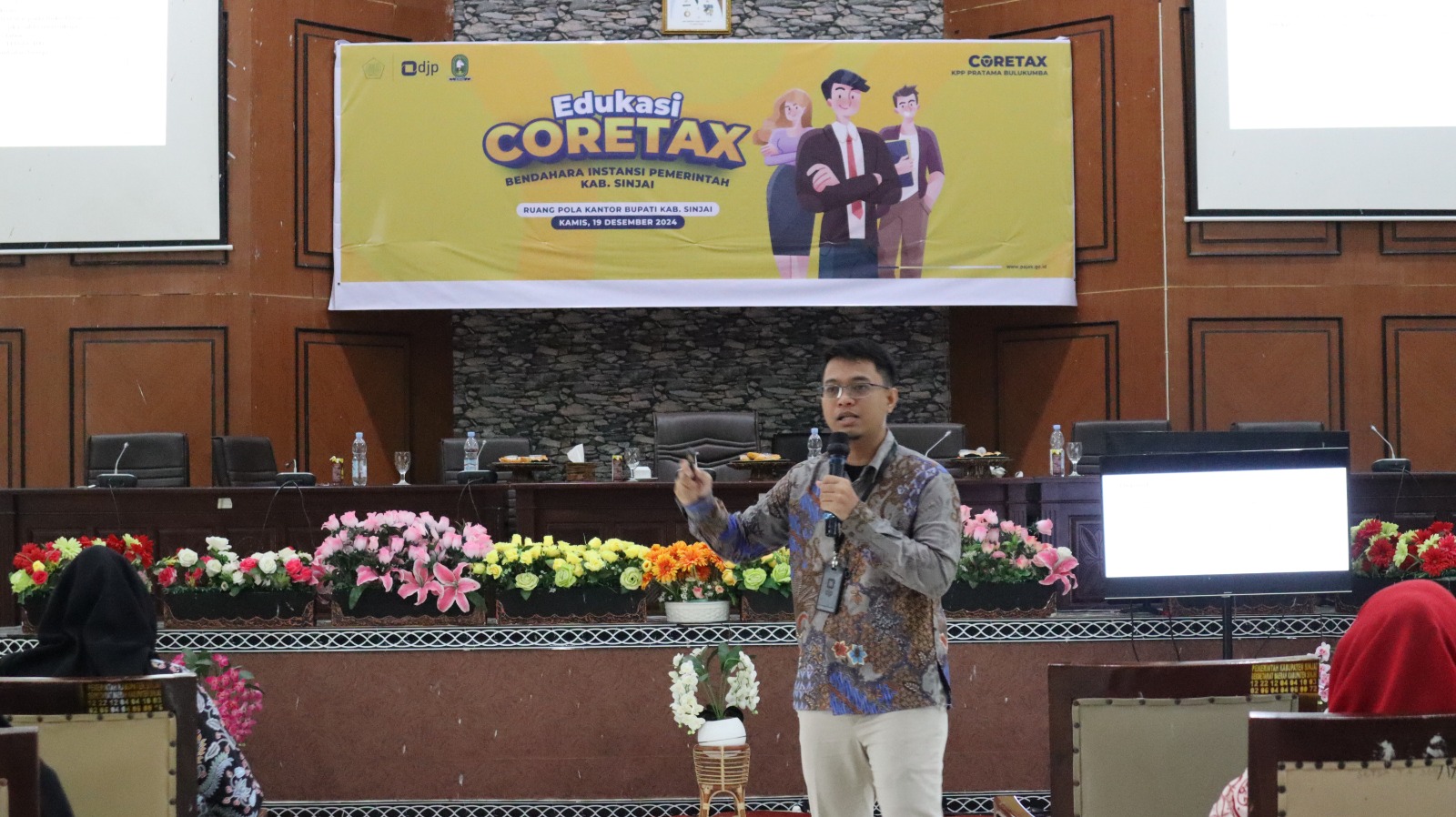 Penyuluh Pajak Kantor Pelayanan Pajak (KPP) Pratama Bulukumba selaku pemateri pada kegiatan Edukasi Coretax Wajib Pajak Instansi Pemerintah Kabupaten Sinjai Tahun 2024 di Ruang Pola Kantor Bupati Sinjai menjelaskan terkait berbagai fitur sistem Coretax, salah satunya adalah Buku Besar Wajib Pajak (Kamis,19/12).