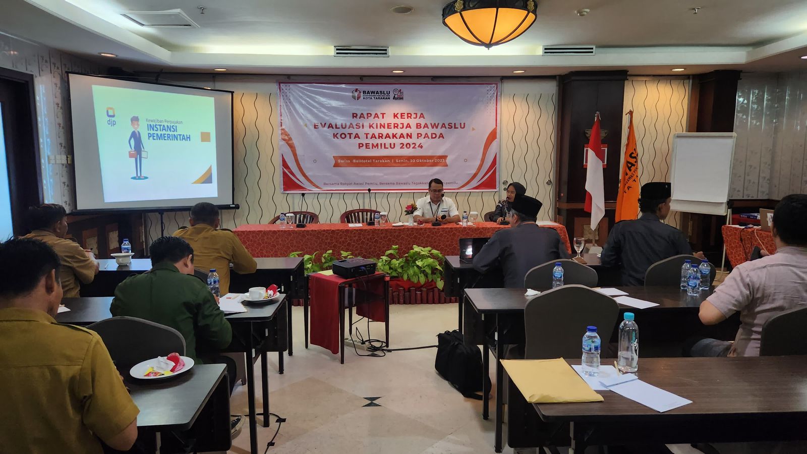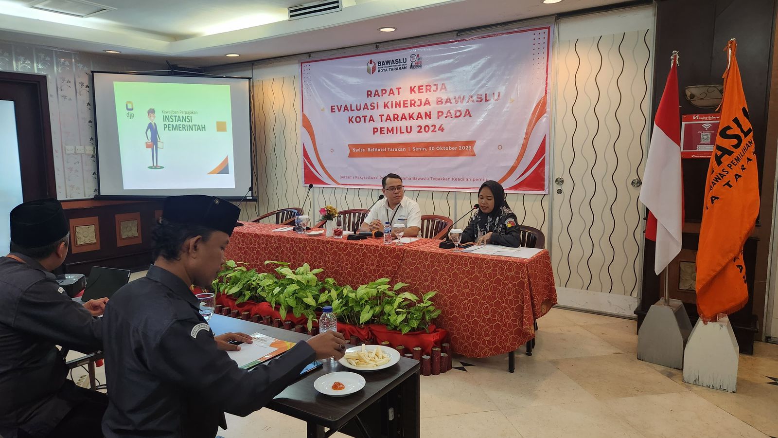 Penyuluh Kantor Pelayanan Pajak (KPP) Pratama Tarakan turut serta dalam rapat kerja evaluasi kinerja Badan Pengawas Pemilu (Bawaslu) Kota Tarakan terkait Pemilu 2023 yang diselenggarakan di Ballroom Swissbel Hotel Tarakan, Kota Tarakan (Senin, 30/10). Tujuan utama adalah meningkatkan akuntabilitas perpajakan dalam konteks acara pemilu.