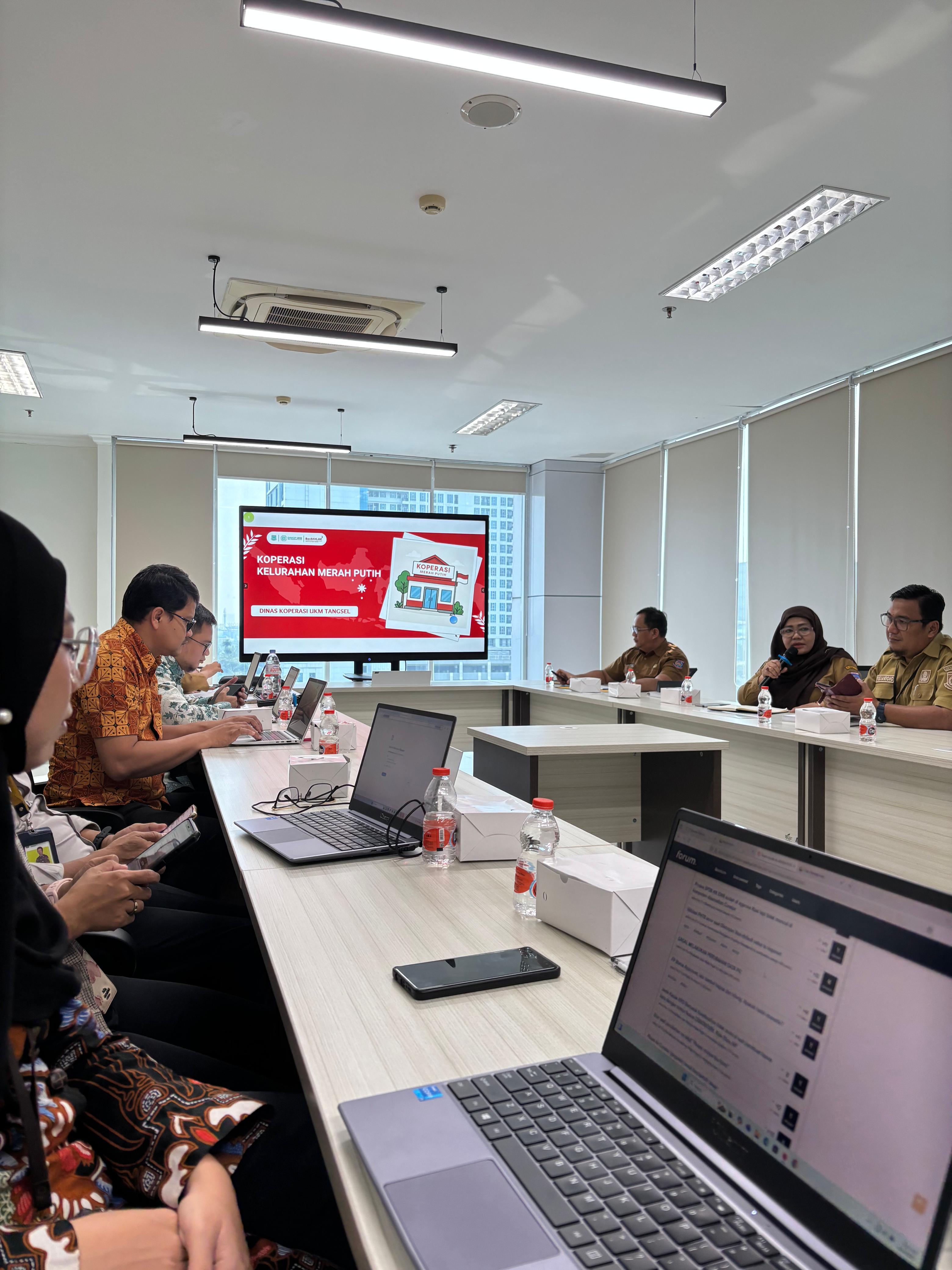 Peserta rapat adalah beberapa dinas di wilayah Tangsel seperti Dinas Kesehatan, Dinas Perhubungan, dan lainnya. Kegiatan ini dilakukan dalam rangka persiapan operasional Koperasi Kelurahan Merah Putih menindaklanjuti Instruksi Presiden Republik Indonesia Nomor 9 Tahun 2025 tentang Percepatan Pembentukan Koperasi Desa/Kelurahan Merah Putih.