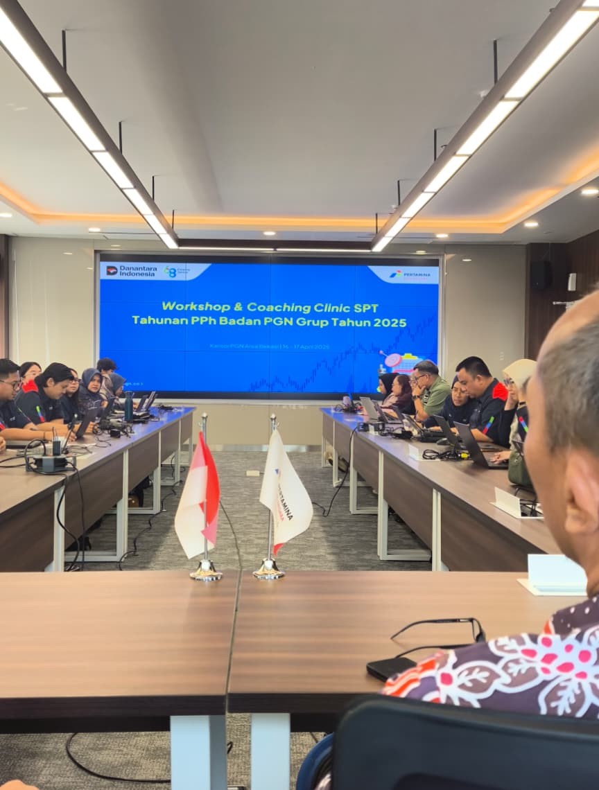 Kantor Wilayah Direktorat Jenderal Pajak (Kanwil DJP) Wajib Pajak Besar menyelenggarakan kegiatan workshop dan coaching clinic pengisian Surat Pemberitahuan (SPT) Tahunan Pajak Penghasilan (PPh) Badan Tahun Pajak 2025 dengan menggunakan sistem Coretax DJP. Kegiatan ini diikuti oleh PT Perusahaan Gas Negara (PGN) beserta entitas anak usahanya di Bekasi (Kamis, 16/4).