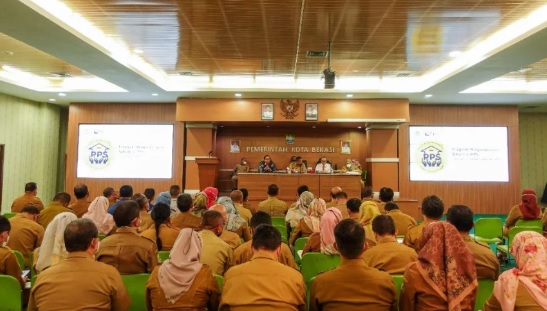 Pelaksana Tugas (Plt.) Wali Kota Bekasi Tri Adhianto Tjahyono bersama Kepala Kantor Pelayanan Pajak (KPP) di wilayah Kota Bekasi membuka sosialisasi Program Pengungkapan Sukarela (PPS) di Aula Nonon Senthani, Bekasi (Senin, 6/6). Sosialisasi PPS mereka tujukan kepada seluruh pejabat Organisasi Perangkat Daerah (OPD) di Pemerintah Kota Bekasi.