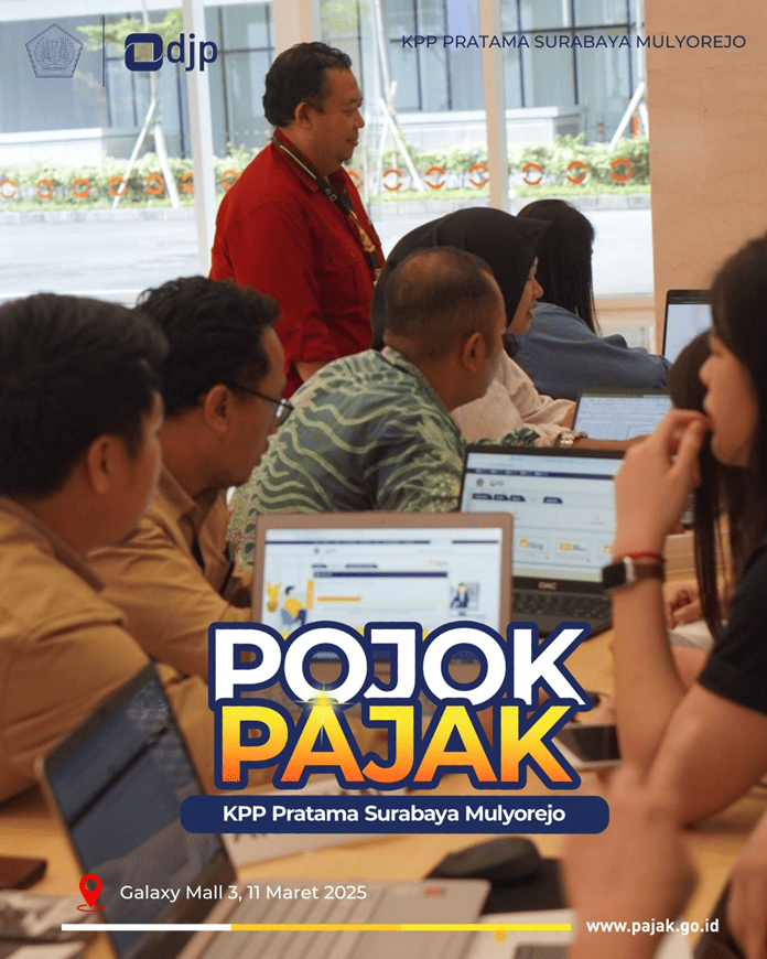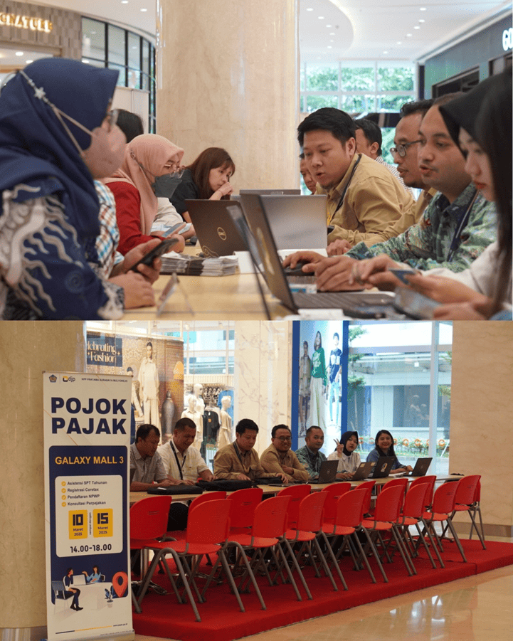 Kantor Pelayanan Pajak (KPP) Pratama Surabaya Mulyorejo kembali membuka Layanan di Luar Kantor dalam gelaran pekan pojok pajak di Lantai Dasar Galaxy Mall 3 Surabaya, Kota Surabaya (Sabtu, 15/3). Pojok pajak ini berlangsung sejak 10 Maret 2025 dengan jam layanan hingga pukul 18.00 WIB.