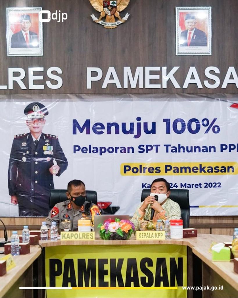 Kantor Pelayanan Pajak (KPP) Pratama Pamekasan mengadakan kelas pajak pengisian SPT Tahunan di Polres Pamekasan. Kegiatan berlangsung dari pukul 09.00 s.d. 12.00 WIB yang diikuti oleh Kapolres Pamekasan AKBP Rogib Triyanto beserta jajarannya (Kamis, 24/03).
