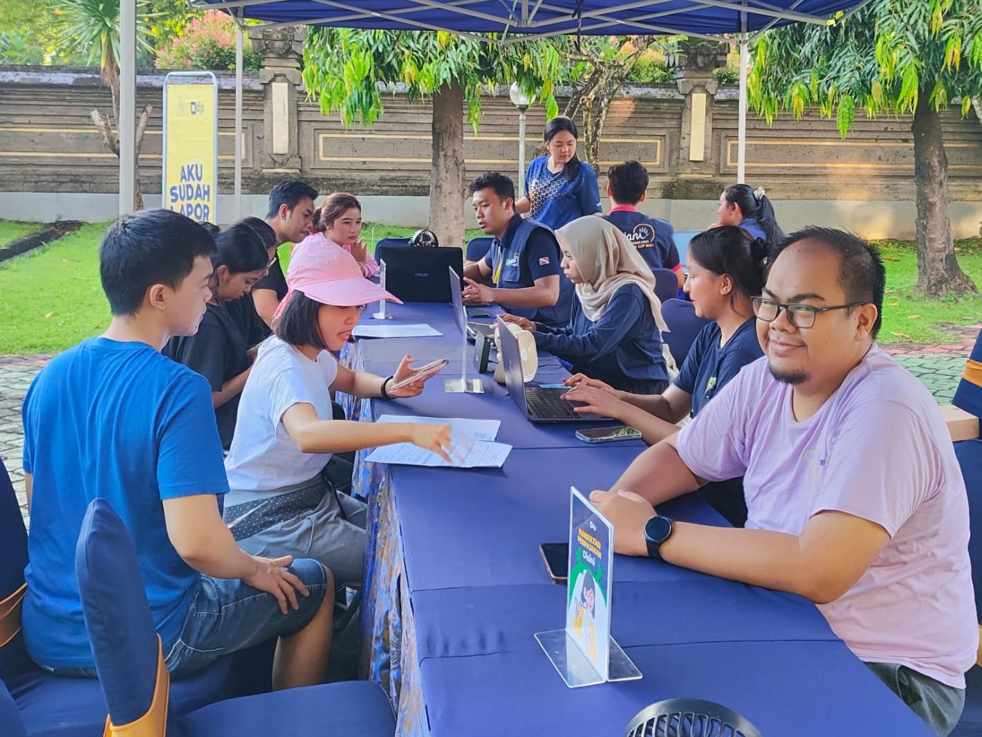 Kantor Pelayanan Pajak (KPP) Pratama Denpasar Timur kembali selenggarakan pojok pajak saat Car Free Day (CFD) di Halaman Gedung Keuangan (GKN) I, sisi sebelah barat Monumen Bajra Sandhi, Renon, Kota Denpasar (Minggu, 2/3).