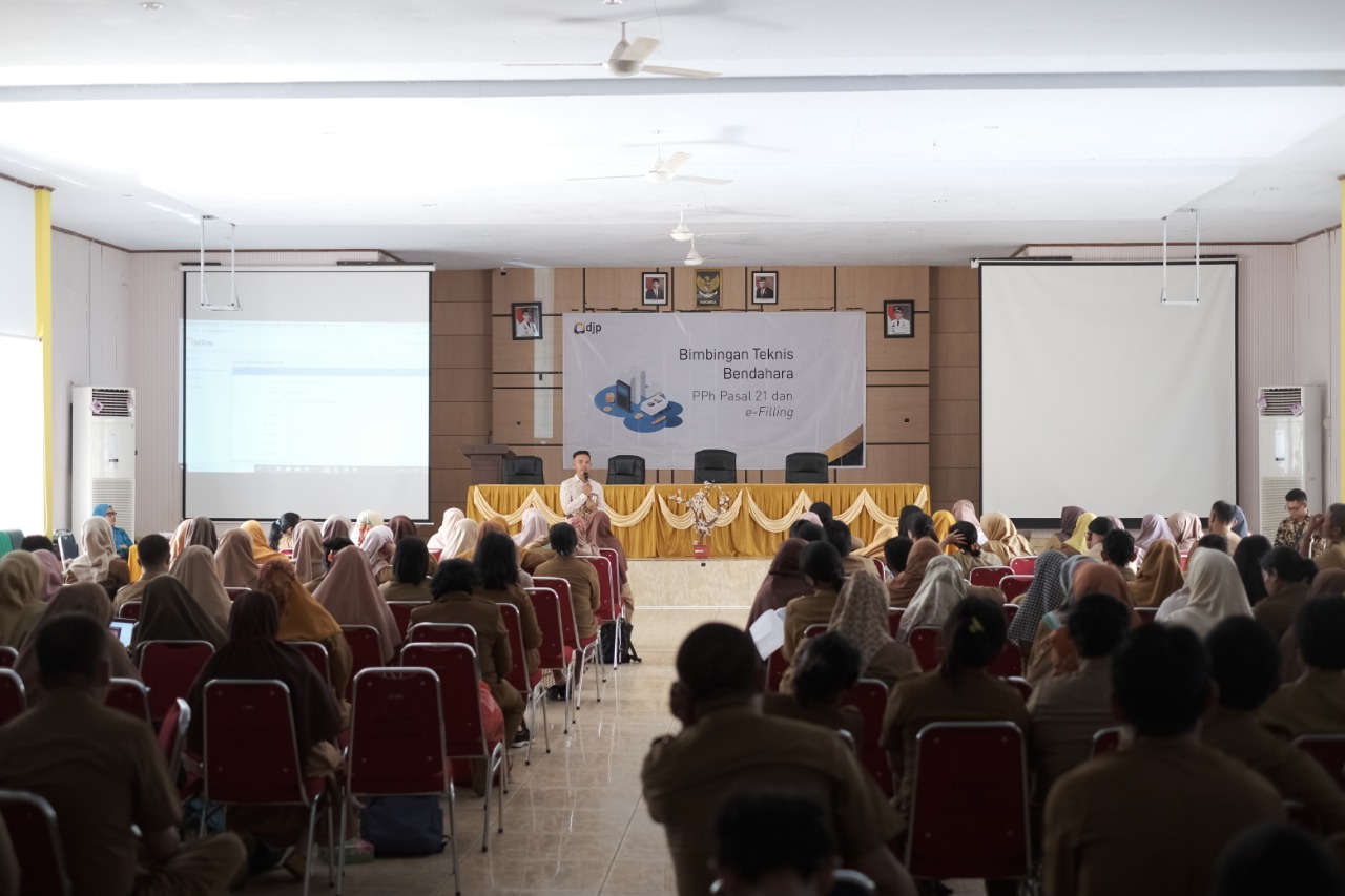 Kantor Pelayanan, Penyuluhan, dan Konsultasi Perpajakan (KP2KP) Malili mengadakan Bimbingan Teknis (Bimtek) pembuatan bukti potong 1721 A2 dan pelaporan SPT Tahunan secara e-Filing pada 190 Bendahara Taman Kanak-kanak, Sekolah Dasar, dan Sekolah Menengah Pertama se-Kabupaten Luwu Timur (Selasa, 11/2). Kegiatan ini berlangsung di ruang Aula Dinas Pendidikan Kabupaten Luwu Timur.