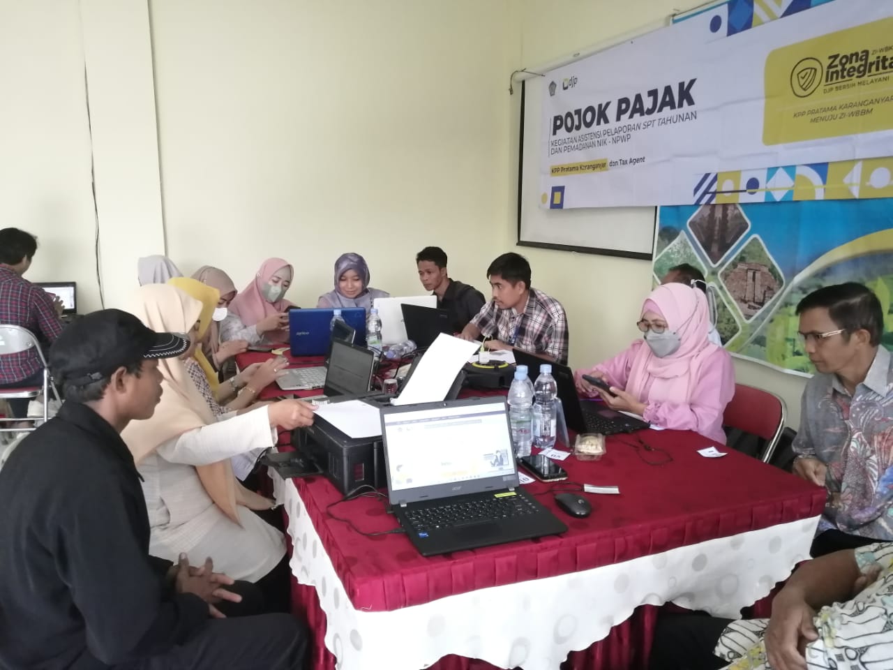 Lebih dari 150 warga menghadiri kegiatan pojok pajak dengan melakukan pelaporan Surat Pemberitahuan (SPT) Tahunan dan sekaligus melakukan pemadanan Nomor Induk Kependudukan menjadi Nomor Pokok Wajib Pajak.