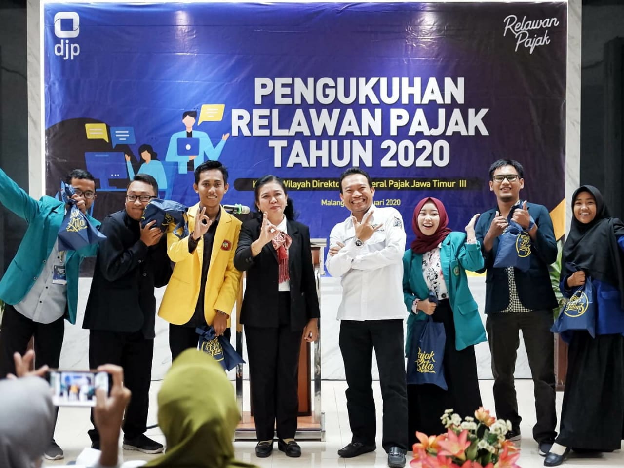 Kanwil DJP Jawa Timur III melaksanakan Pengukuhan Relawan Pajak Tahun 2020 di lobi gedung Jawa Timur III, Malang (Senin, 24/2). Agustin Vita Avantin, Kepala Kanwil DJP Jawa Timur III mengukuhkan secara simbolis 402 Relawan Pajak yang berasal dari 10 perguruan tinggi yang tersebar dari wilayah Kediri hingga Banyuwangi.