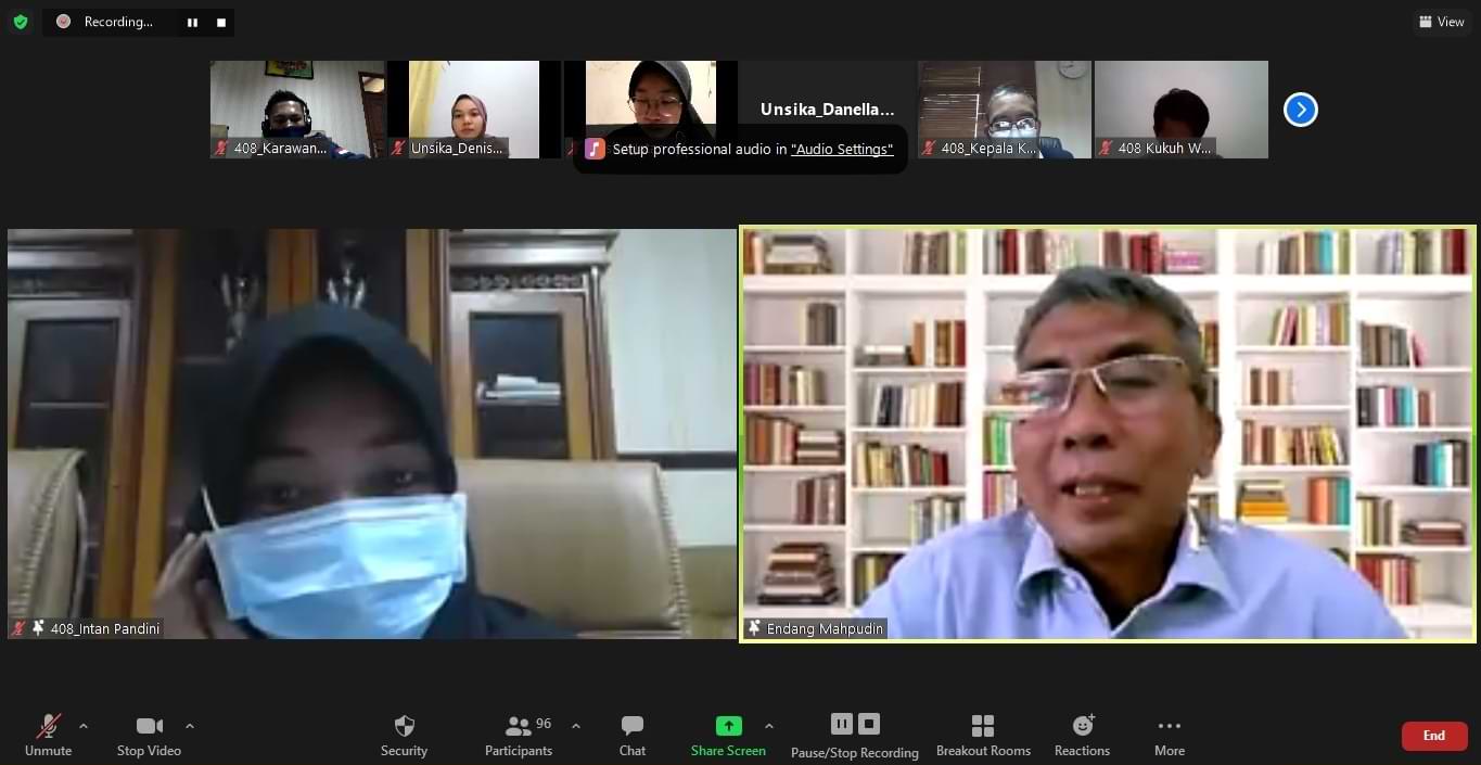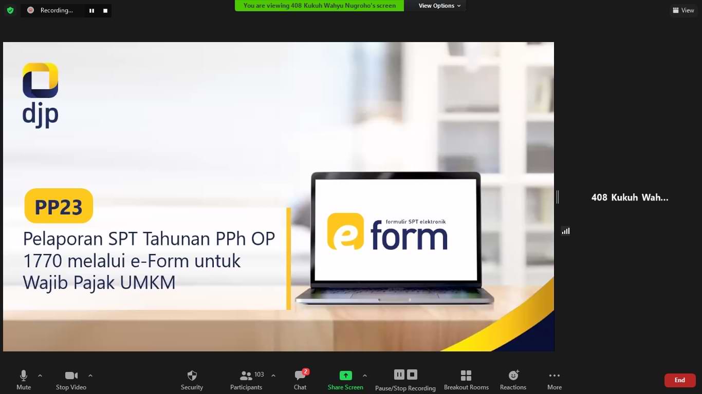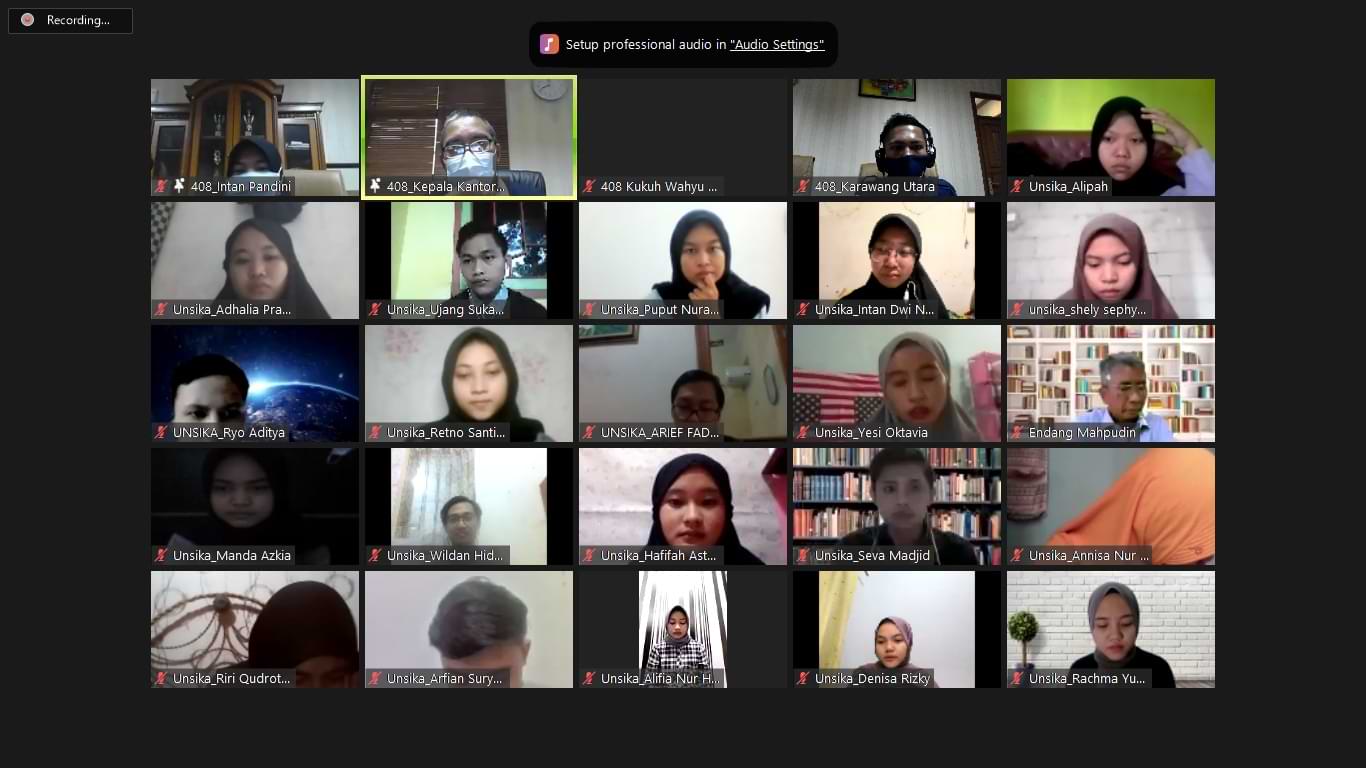 KPP Pratama Karawang Utara memberikan materi tentang e-Form dan e-Filing kepada para relawan pajak dari Tax Center Universitas Singaperbangsa Karawang (Unsika) melalui Zoom Meeting di Karawang (Rabu, 4/2). Kegiatan ini merupakan tindak lanjut dari program Relawan Pajak 2021 yang dibentuk atas kerja sama Direktorat Jenderal Pajak dengan berbagai instansi penyelenggara pendidikan tinggi dan tax center di seluruh Indonesia.