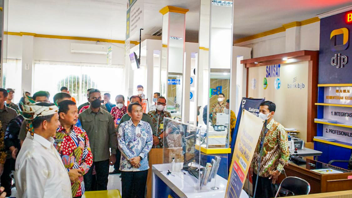 Menteri Dalam Negeri Tito Karnavian mengunjungi loket Kantor Pelayanan Pajak (KPP) Pratama Sumedang dalam kunjungannya ke Mall Pelayanan Publik (MPP) Kabupaten Sumedang di Jl. Prabu Geusan Ulun No.36 Sumedang Selatan (Jumat, 21/10).