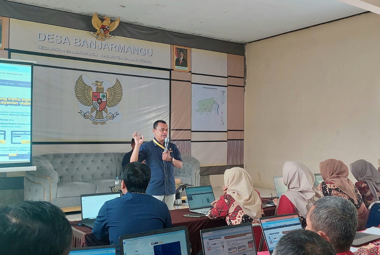 17 Bendahara Desa di wilayah Kecamatan Banjarmangu, Kabupaten Banjarnegara, menghadiri Bimbingan Teknis Kewajiban Perpajakan bagi Instansi Pemerintah Desa Melalui Coretax DJP (Kamis, 11/6). Kegiatan ini diselenggarakan di Aula Desa Banjarmangu dan merupakan bentuk kerja sama antara Kantor Pelayanan Pajak (KPP) Pratama Purbalingga dengan Pemerintah Daerah Kecamatan Banjarmangu.