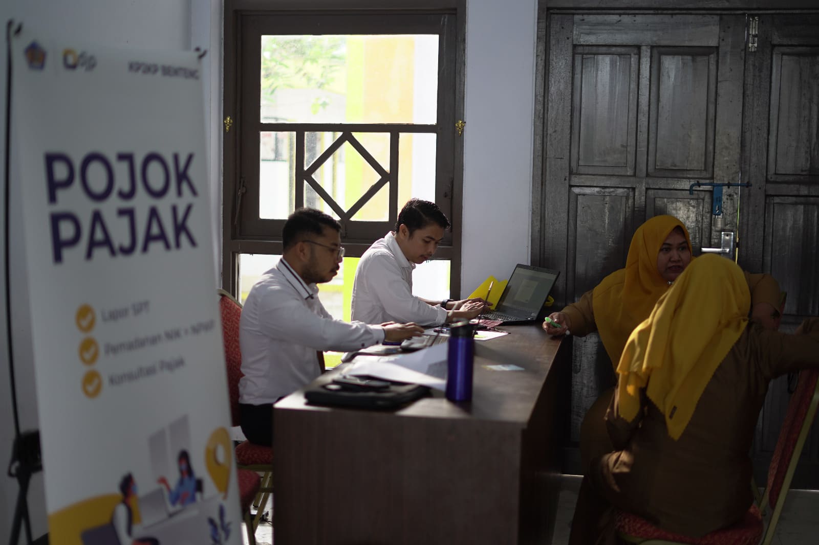 Kantor Pelayanan Penyuluhan dan Konsultasi Perpajakan (KP2KP) Benteng melakukan asistensi Pemadanan Nomor Induk Kependudukan (NIK) menjadi Nomor Pokok Wajib Pajak (NPWP) dan asistensi Pelaporan Surat Pemberitahuan (SPT) Tahunan Pajak Penghasilan Orang Pribadi kepada para Wajib Pajak Aparatur Sipil Negara (ASN) melalui pojok pajak di lingkungan Kantor Bupati Kepulauan Selayar (Senin, 13/3).