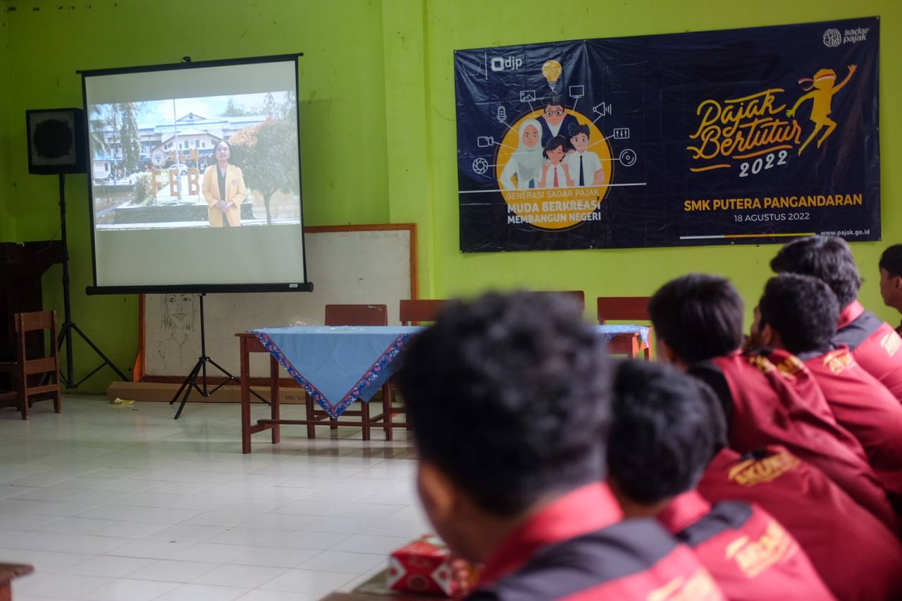 Kantor Pelayanan Pajak (KPP) Pratama Ciamis menyelenggarakan Pajak Bertutur 2022 berlokasi di Sekolah Menengah Kejuruan (SMK) Putera Pangandaran, Jl. Barat Lapang Merdeka No.323, Pananjung, Kec. Pangandaran, Kab. Pangandaran (Kamis, 18/8).