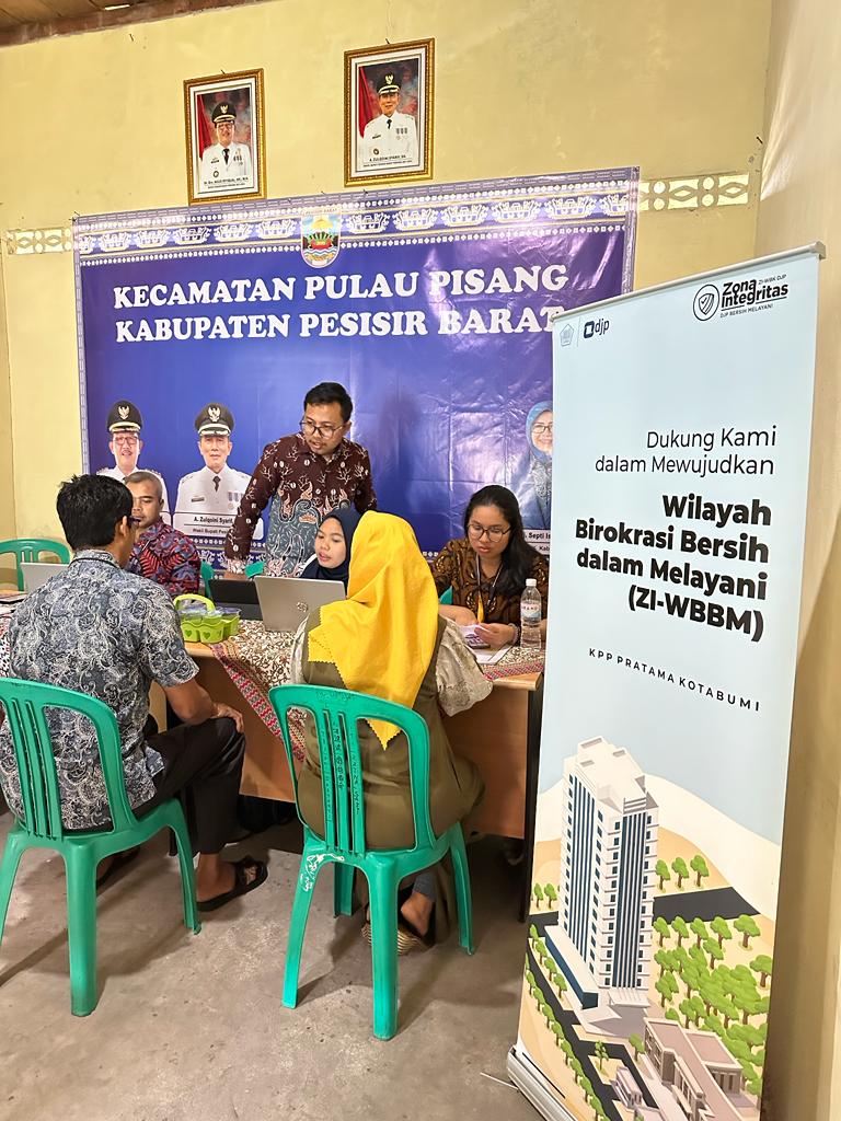 Kantor Pelayanan Pajak Pratama (KPP) Pratama Kotabumi menyeberangi lautan ke Kantor Kecamatan Pulau Pisang, Kabupaten Pesisir Barat, Provinsi Lampung untuk membuka pos pelayanan pajak (Selasa, 29/2). Penyelenggaraan kegiatan ini dilaksanakan dalam rangka menjangkau wajib pajak di wilayah Kabupaten Pesisir Barat khususnya masyarakat yang berada pada Kecamatan Pulang Pisang dan Kecamatan Lemong.