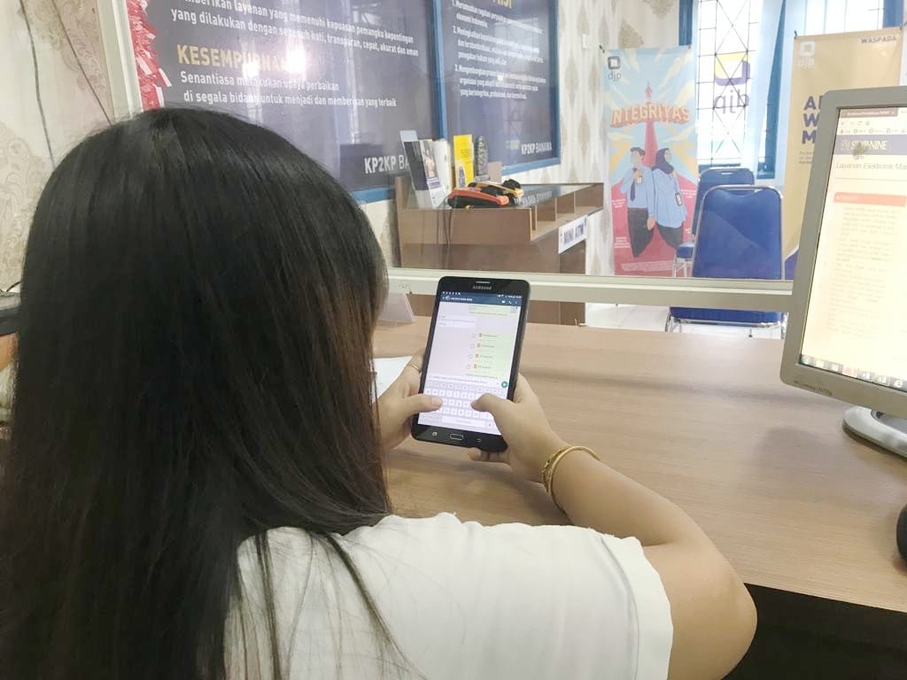 Kantor Pelayanan, Penyuluhan, dan Konsultasi Perpajakan (KP2KP) Banawa melakukan edukasi terhadap Wajib Pajak Orang Pribadi (WPOP) Usaha Mikro Kecil Menengah (UMKM) Kabupaten Donggala secara daring melalui WhatsApp dan telepon di Tempat Pelayanan Terpadu (TPT) KP2KP Banawa, kabupaten Donggala (Senin, 11/10).