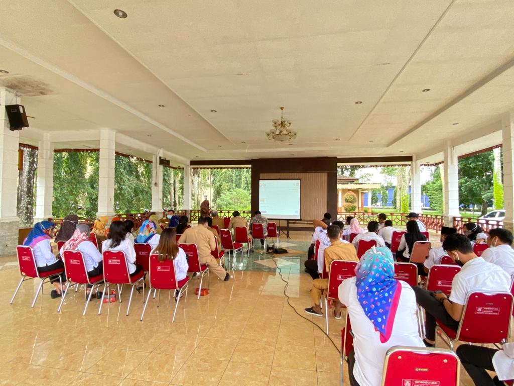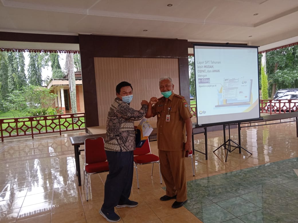 Tiga orang pegawai KPP Pratama Lubuk Linggau memberikan sosialisasi pelaporan SPT PPh OP Tahunan melalui e-Filing di Aula Sekretariat Daerah Lubuklinggau (Selasa, 23/2).