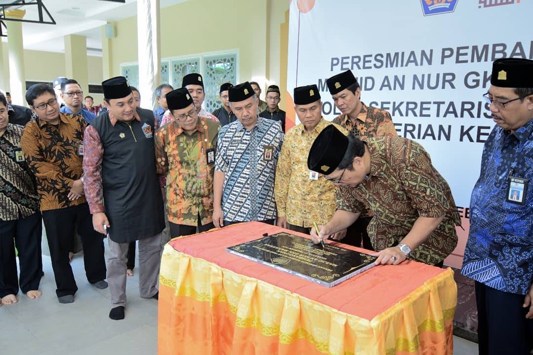 Sekretaris Jenderal Kementerian Keuangan RI DR. Hadiyanto S.H., L.L.M. meresmikan pembangunan Masjid An Nur GKN Makassar (Jumat, 21/2). Peresmian masjid yang bertempat di lingkungan Gedung Keuangan Negara Makassar, Jalan Urip Sumoharjo KM.4, Kota Makassar ini dihadiri pula oleh para Kepala Kantor Kementerian Keuangan wilayah Makassar serta perwakilan pegawai ASN Kementerian Keuangan dan tamu undangan.