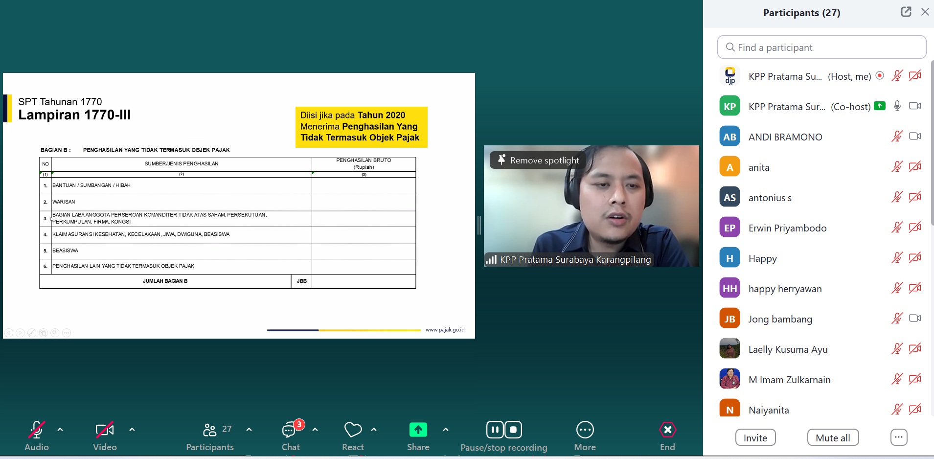 "Tingkat kepatuhan pelaporan SPT Tahunan Badan masih perlu ditingkatkan. Melalui kelas pajak ini, kami ingin memastikan wajib pajak memahami kewajiban perpajakannya dan dapat melaporkan SPT dengan mudah, benar dan tepat waktu," tutur Erwin.