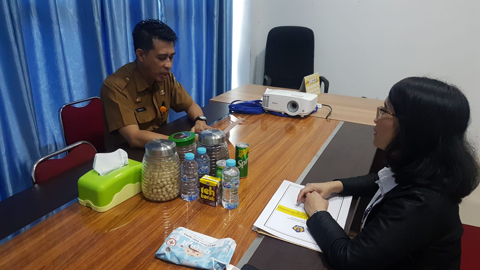 Kepala Kantor Pelayanan, Penyuluhan dan Konsultasi (KP2KP) Takalar, Creschenthum Srimariastuti Boroh melakukan kunjungan kerja di kantor Badan Keuangan dan Aset Daerah (BKAD) Kabupaten Takalar (Senin, 20/02). Kunjungan kerja dimaksudkan untuk berkoordinasi dalam rangka rekonsiliasi bersama antara KPP Pratama Bantaeng, BPKAD Kabupaten Takalar, dan Kantor Pelayanan Perbendaharaan Negara (KPPN) Makassar II untuk mengamankan penerimaan negara dari sektor pajak tahun 2023.