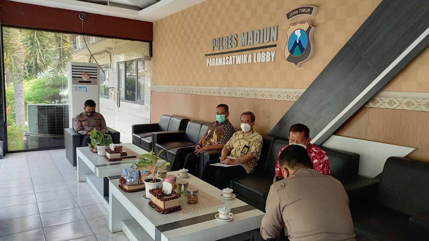 Kepala Kantor Pelayanan Pajak (KPP) Pratama Madiun Santoso Dwi Prasetyo melakukan kunjungan kerja ke Kepolisian Resor (Polres) Madiun. Prasetyo ditemui langsung oleh Kapolres Madiun AKBP Jury Leonard Siahaan di ruang Paramasatwika Lobby Kepolisian Resor Madiun (Jumat, 24/9).
