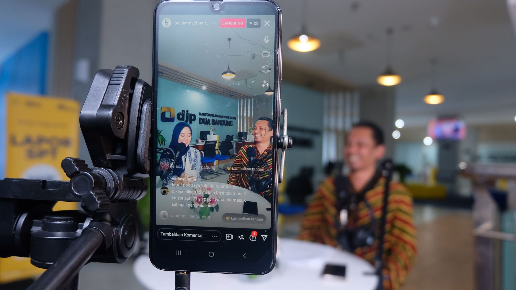 Kantor Pelayanan Pajak (KPP) Madya Dua Bandung menggelar siaran langsung Instagram (live IG) dengan tema “Natura dan/atau Kenikmatan Kena Pajak?” pada akun @pajakmdy2bandung di Gedung KPP Madya Dua Bandung, Jalan Ibrahim Adjie No 372, Kecamatan Batununggal, Kota Bandung (Jumat, 27/1).