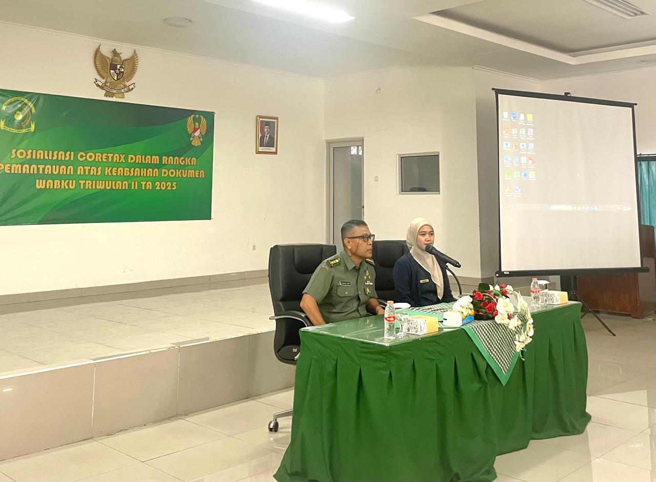 Kantor Pelayanan Pajak (KPP) Pratama Bandung Cibeunying memberikan edukasi Coretax DJP kepada jajaran perwira keuangan TNI (PAKU) dan bendahara pengeluaran yang ada di lingkungan Keuangan Pusat (Kupus) II Ditkuad, Jalan Sumatera No 12, Kota Bandung (Rabu, 30/4).