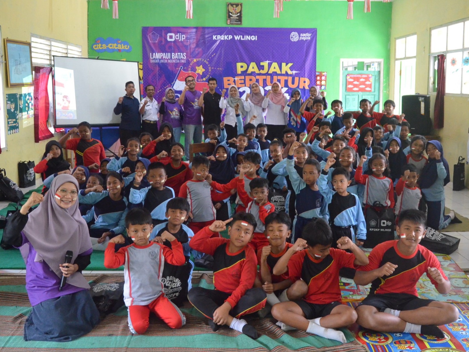 Kantor Pelayanan, Penyuluhan, dan Konsultasi Perpajakan (KP2KP) Wlingi turut serta menyelenggarakan kegiatan Pajak Bertutur di Sekolah Dasar Negeri (SDN) Ngadirenggo 4, Desa Ngadirenggo, Kecamatan Wlingi, Kabupaten Blitar, Jawa Timur (Rabu,7/8). Kegiatan ini diikuti oleh 53 siswa SDN Ngadirenggo 4.