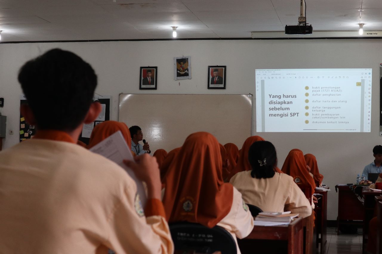 Kantor Pelayanan, Penyuluhan, dan Konsultasi Perpajakan (KP2KP) Tanah Grogot berkesempatan untuk mengisi kegiatan belajar mengajar sebagai guru tamu secara tatap muka yang diikuti oleh 69 siswa Sekolah Menengah Kejuruan (SMK) Negeri 1 Tanah Grogot di Jl. Ki Hajar Dewantara No. 9, Tanah Grogot, Kab. Paser, Kalimantan Timur (Rabu, 15/2).