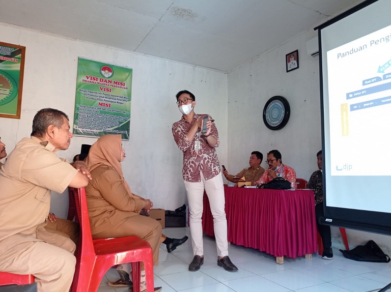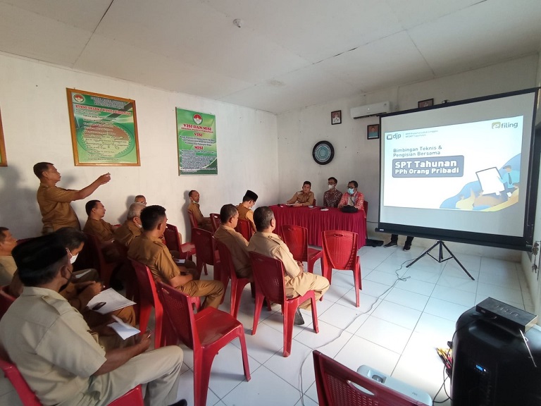 Kantor Pelayanan, Penyuluhan dan Konsultasi Perpajakan (KP2KP) Tugumulyo bersama tim penyuluh Kantor Pelayanan Pajak (KPP) Pratama Lubuk Linggau mengunjungi Kantor Kecamatan Purwodadi untuk memberikan asistensi SPT Tahunan PPh Orang Pribadi bagi pegawai di lingkungan Kecamatan Purwodadi Kabupaten Musi Rawas (Selasa, 8/2).