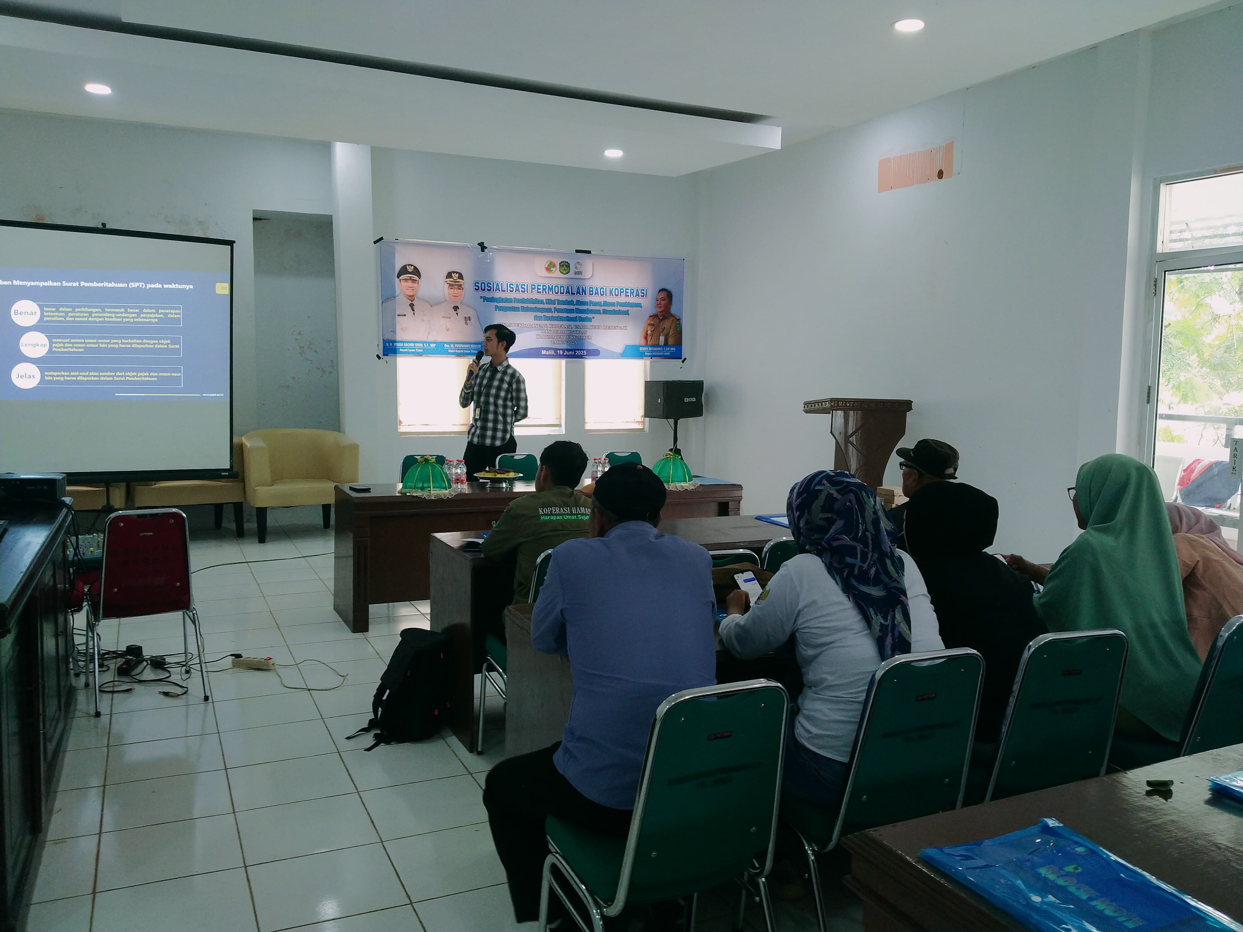 Kegiatan sosialisasi dilakukan di Aula Disdagkop-UKMP Kabupaten Luwu Timur. Kegiatan ini menghadirkan 20 koperasi yang diwakili oleh masing-masing pengurus. Kegiatan sosialisasi diawali dengan sambutan Kepala KP2KP Malili, Elfitro Damar Ansari.