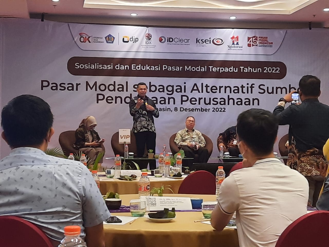 Otoritas Jasa Keuangan (OJK) dan PT Bursa Efek Indonesia (BEI) bekerja sama dengan Direktorat Jenderal Pajak menyelenggarakan Sosialisasi Pasar Modal sebagai Alternatif Sumber Pendanaan Perusahaan di Fugo Hotel Banjarmasin (Kamis, 8/12).