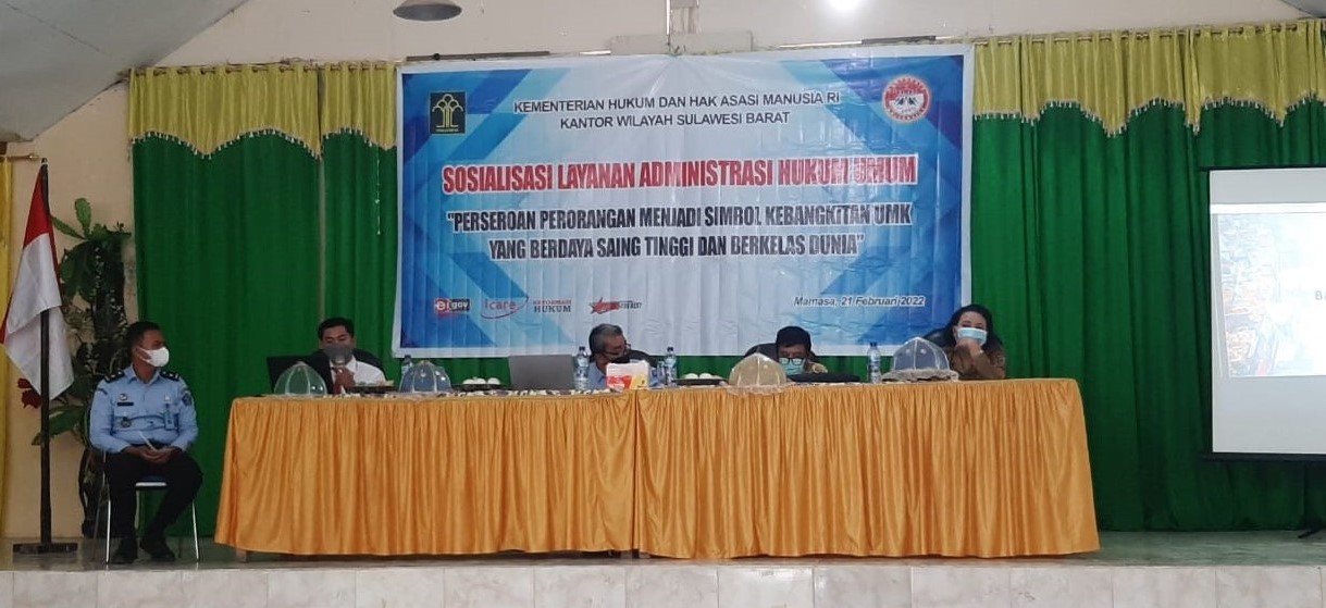 Kantor Pelayanan, Penyuluhan, dan Konsultasi Perpajakan (KP2KP) Mamasa menjadi pembicara dalam sosialisasi Perseroan Perorangan yang diadakan Kantor Wilayah Kementerian Hukum dan HAM Sulawesi Barat (Kanwil Kemenkumham Sulbar) di Auditorium Hotel Matana II, Jalan Poros Polewali-Mamasa (Senin, 21/2). Dalam sosialisasi tersebut, KP2KP Mamasa memaparkan berbagai insentif pajak yang diberikan pemerintah untuk Usaha Mikro, Kecil, dan Menengah (UMKM).