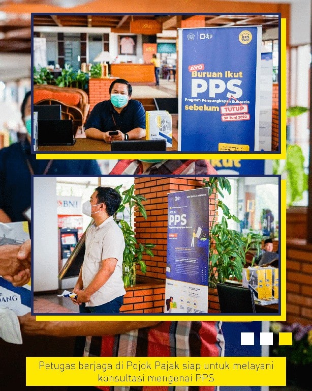 Bertempat di lobby utama, masyarakat dapat melakukan konsultasi PPS dan perpajakan lainnya pada Pojok Pajak tersebut dari pukul 10.00 sampai dengan 16.00 WIB. Pojok Pajak ini diselenggarakan mengingat batas waktu pelaporan PPS sudah mendekati akhir pada 30 Juni 2022. KPP Sumedang akan membuka Pojok Pajak ini setiap Sabtu dan Minggu sampai batas pelaporan PPS selesai.