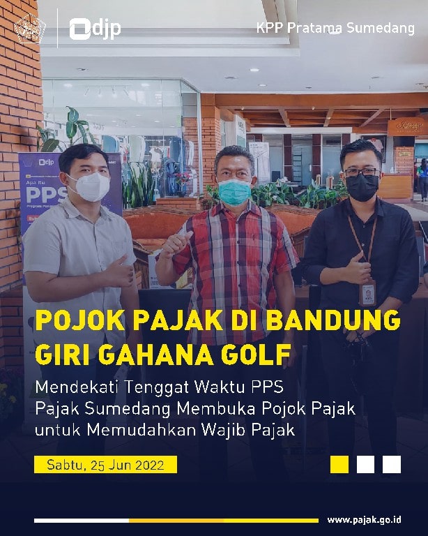 Kantor Pelayanan Pajak (KPP) Pratama Sumedang membuka Pojok Pajak untuk sosialisasi Program Pengungkapan Sukarela (PPS) di golf course Bandung Giri Gahana Golf, Kabupaten Sumedang (Sabtu, 25/6).