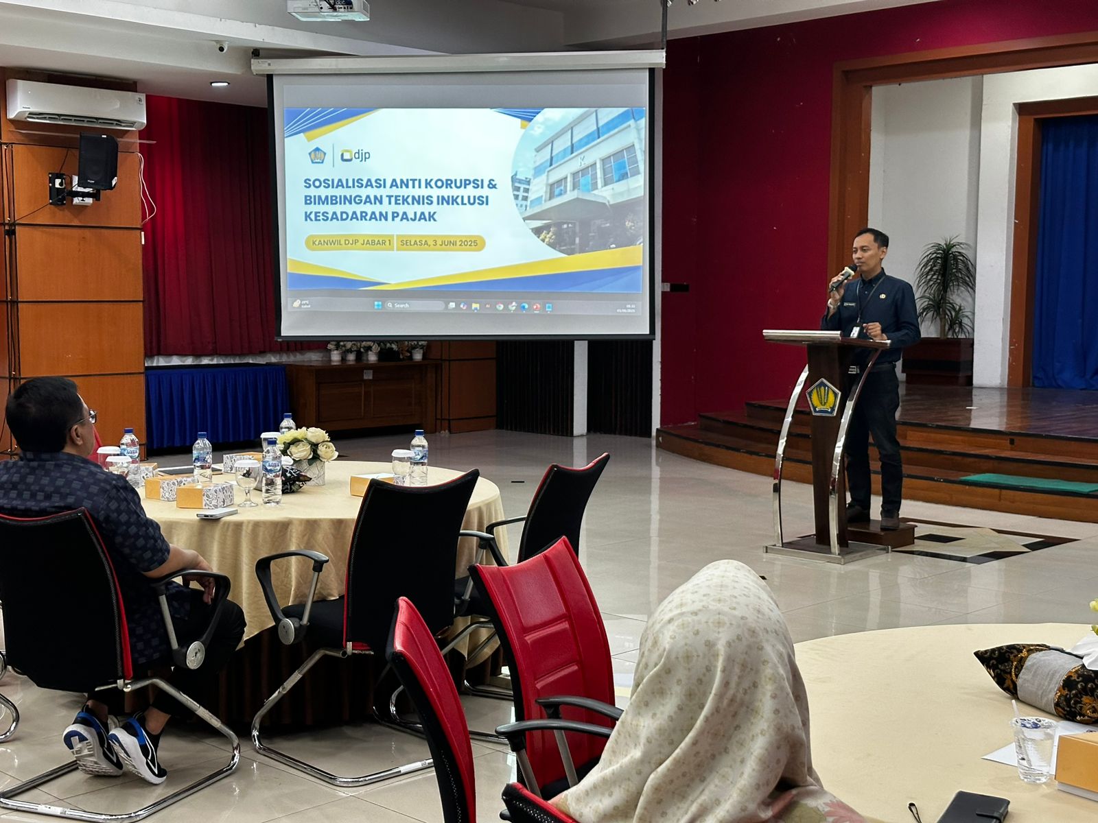 Kantor Wilayah Direktorat Jenderal Pajak (Kanwil DJP) Jawa Barat I menggelar kegiatan bimbingan teknis Program Inklusi Kesadaran Pajak dalam Pendidikan Menengah kepada Wakil Kepala Sekolah Bidang Kurikulum serta guru mata pelajaran Pendidikan Pancasila dari 27 SMA Negeri di Kota Bandung (Selasa, 3/6). Kegiatan ini dilangsungkan secara luring di ruang aula Kanwil DJP Jawa Barat I, Jalan Asia Afrika, Kota Bandung.