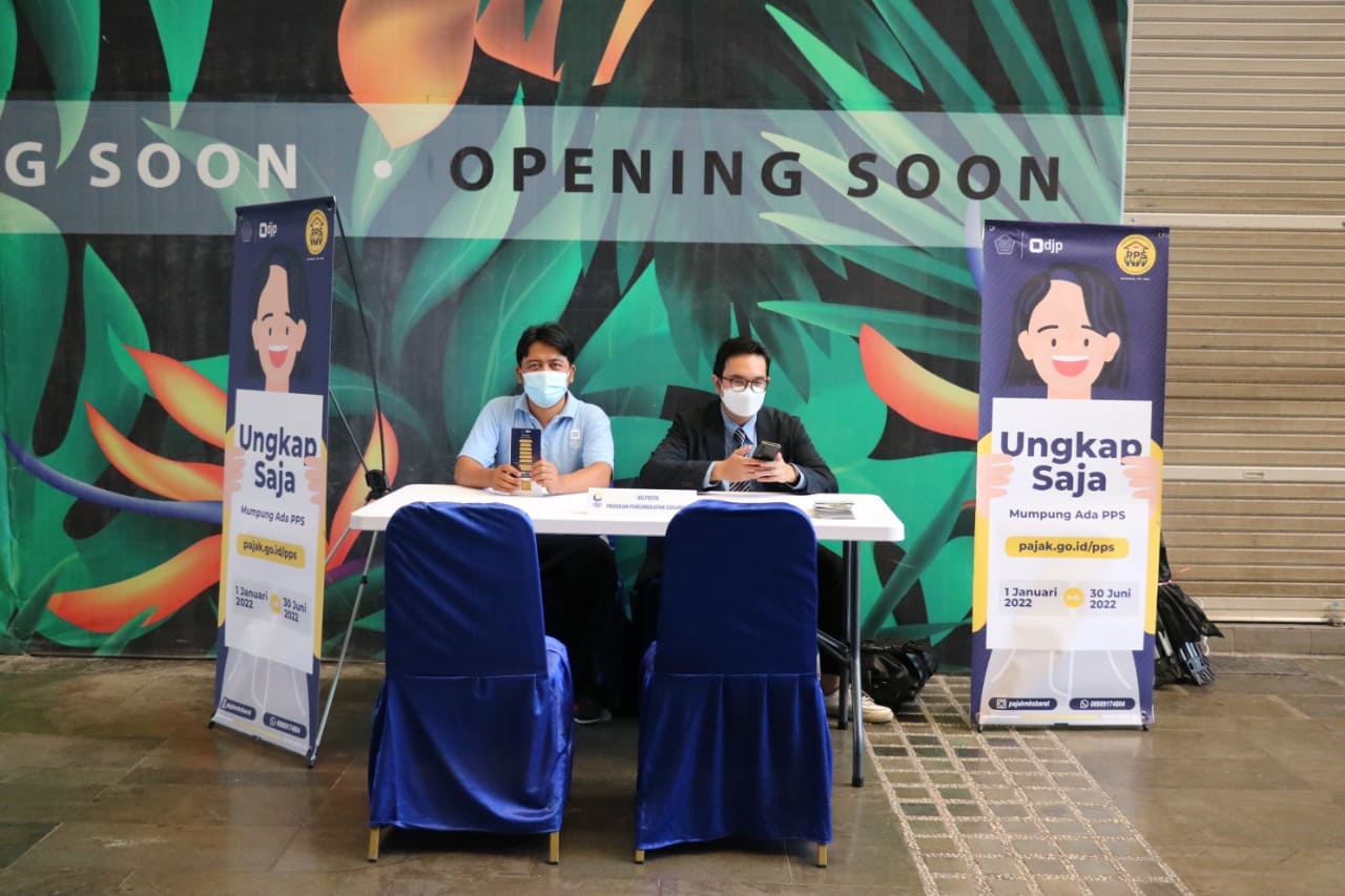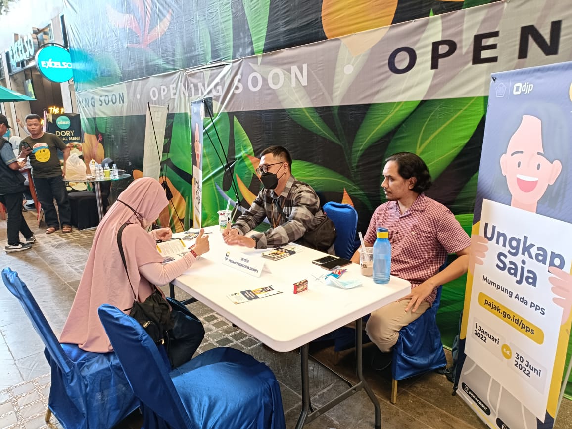 Kantor Pelayanan Pajak (KPP) Pratama Makassar Barat membuka pojok pajak di Mall Ratu Indah, Kota Makassar (Sabtu, 18/6). Pojok pajak dibuka untuk menyosialisasikan PPS dan mengajak wajib pajak untuk dapat mengikuti PPS ini.