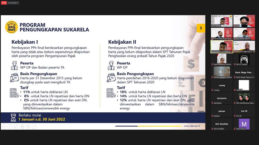 Kantor Pelayanan Pajak (KPP) Pratama Palopo menyelenggarakan Sosialisasi Program Pengungkapan Sukarela (PPS) untuk sektor perbankan secara daring di Aula KPP Pratama Palopo (Rabu, 12/01).