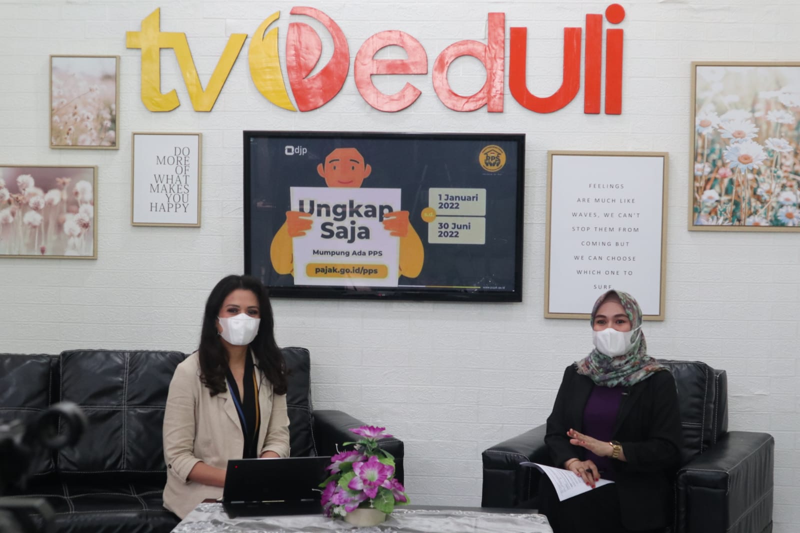 "Untuk para pemirsa TV Peduli dan seluruh masyarakat yang menyaksikan siaran langsung acara kami, bagi yang belum sepenuhnya melakukan pelaporan harta, ayo segera ikuti Program Pengungkapan Sukarela, ini kesempatan kalian untuk berpartisipasi dalam mewujudkan kewajiban perpajakan Anda mulai tanggal 1 Januari 2022 sampai dengan 30 Juni 2022." ujar Ika, Pewarta Acara Live Talkshow TV Peduli.