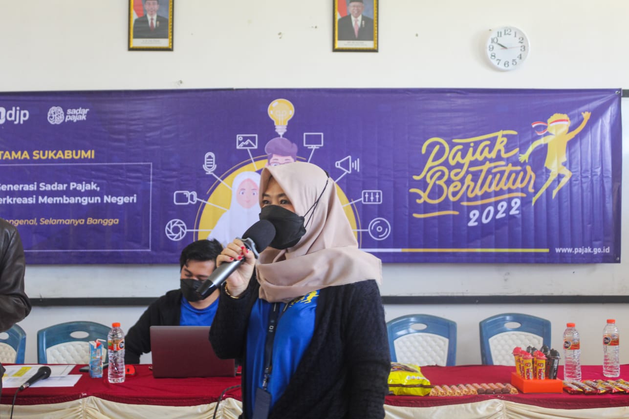 Kantor Pelayanan Pajak (KPP) Pratama Sukabumi menggelar kegiatan Pajak Bertutur 2022 di SMAN 1 Surade, Kabupaten Sukabumi, (Kamis, 18/8). Kegiatan yang berlangsung selama dua jam tersebut diikuti oleh sebanyak 40 siswa dan perwakilan guru SMAN 1 Surade.