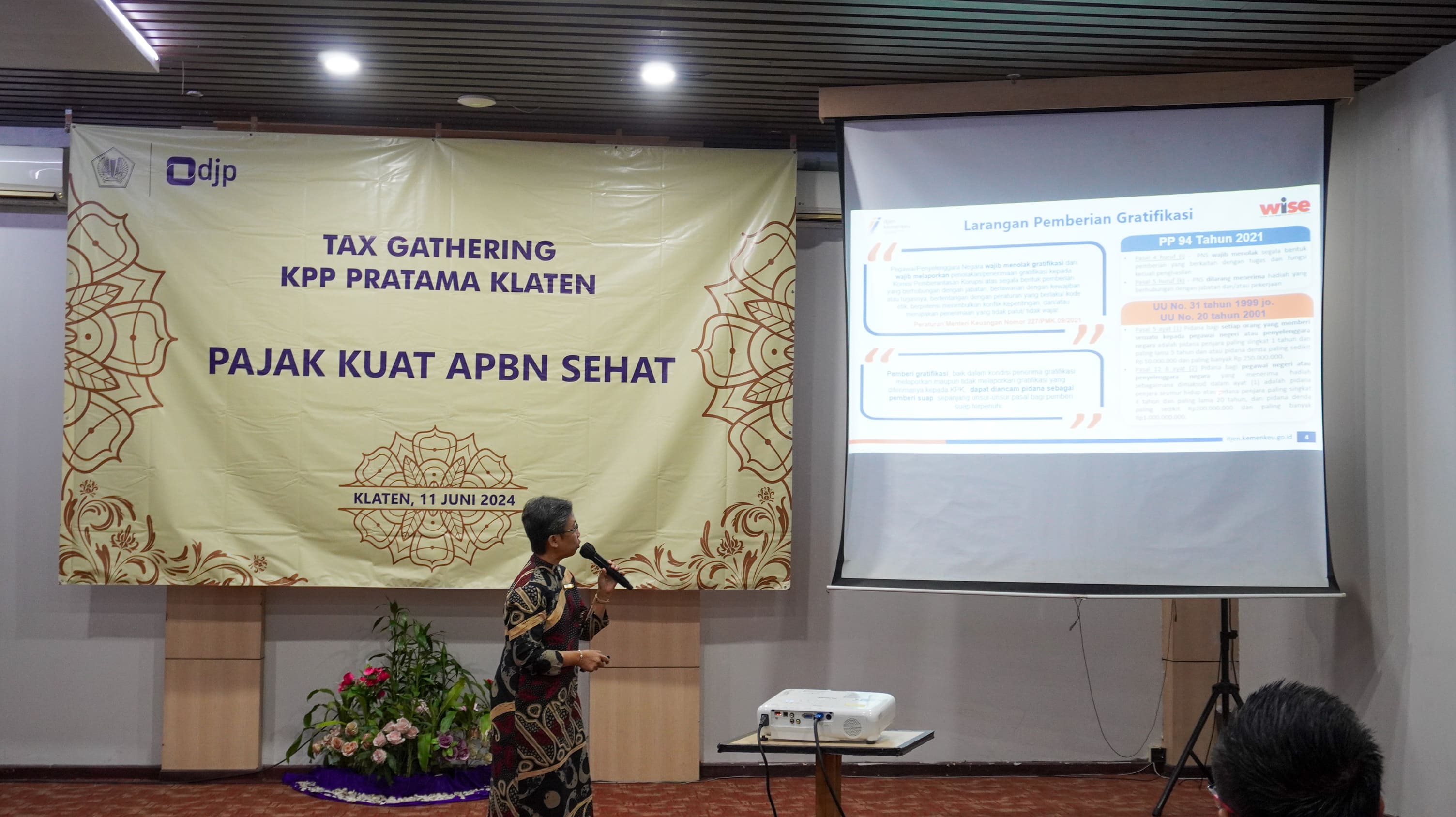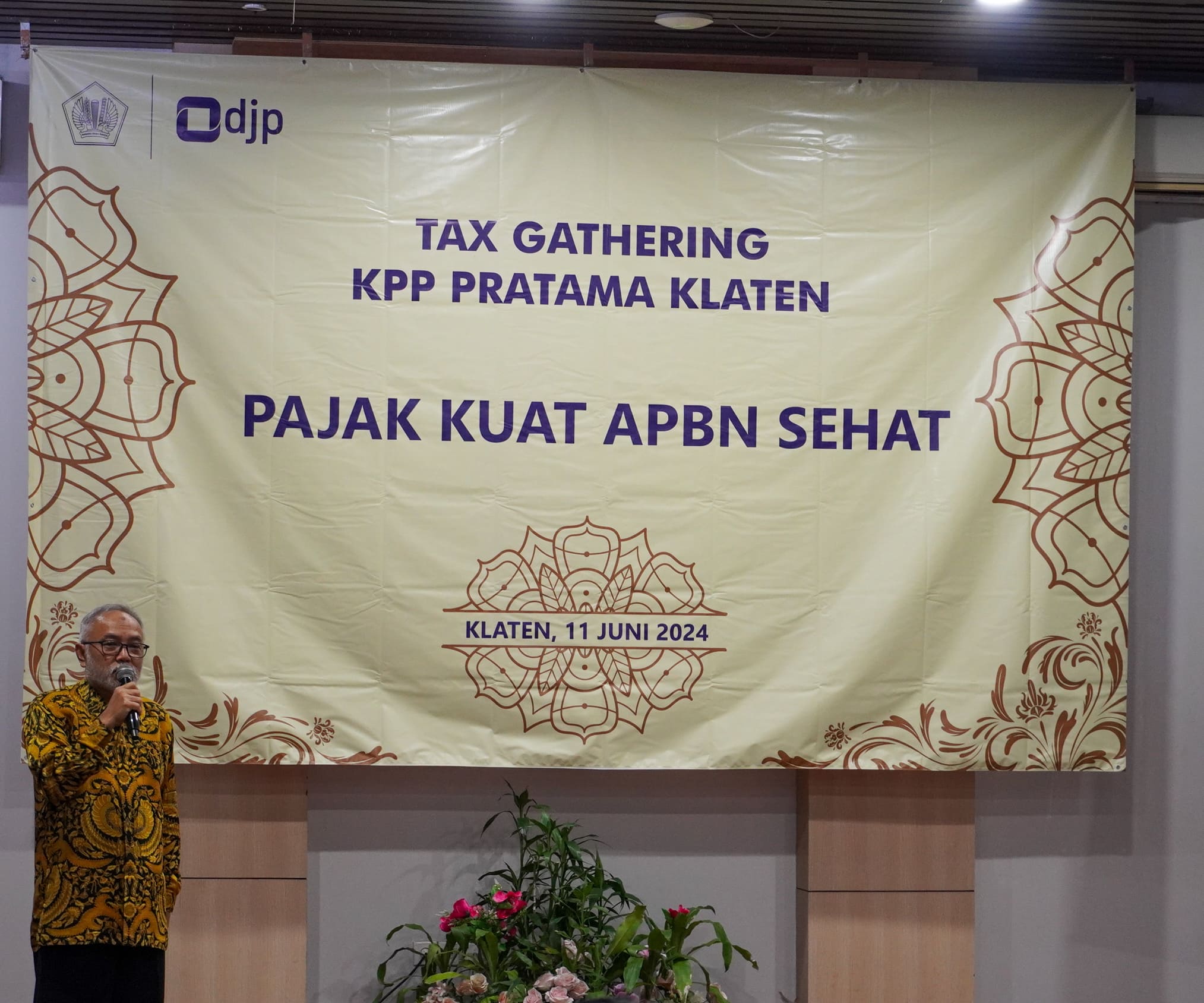 Kantor pelayanan Pajak (KPP) Pratama Klaten menyelenggarakan acara Tax Gathering Tahun 2024 di Ballroom Hotel Grand Tjokro Klaten (Selasa, 11/6). Acara yang mengusung kegiatan berupa pemberian apresiasi dan penghargaan kepada Wajib Pajak. Para Wajib Pajak Teladan yang berkontribusi positif terhadap penerimaan negara hadir dalam acara ini. Penyelenggaran acara ini dimaksudkan juga sebagai bentuk sinergi dan diskusi terbuka antara Wajib Pajak (Tax Payer) dengan petugas pajak (fiskus) dalam bidang perpajakan.