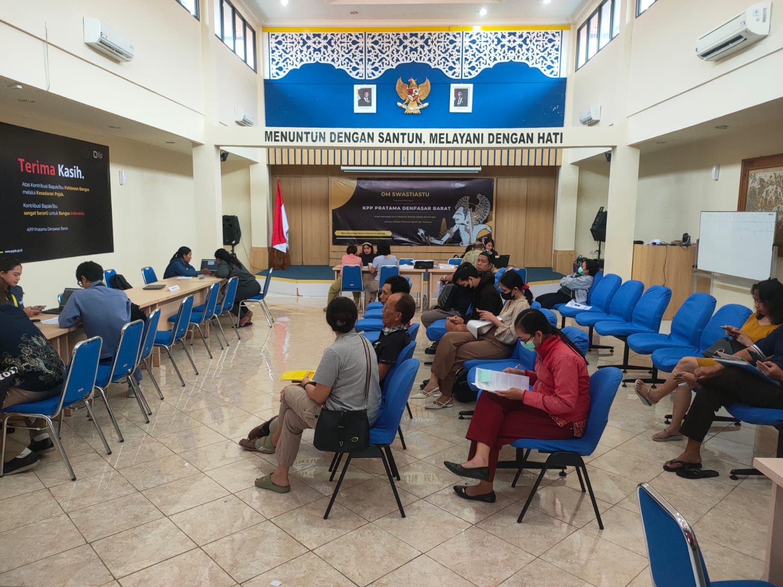 KPP Pratama Denpasar Barat memberikan asistensi dibantu oleh para relawan pajak yang berasal dari Universitas Mahasaraswati Denpasar