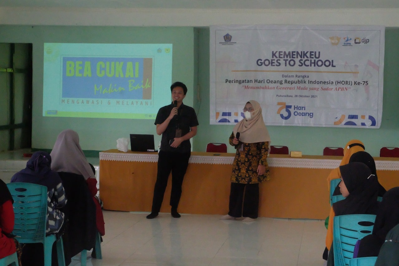 Instansi Kementerian Keuangan meliputi Kantor Pelayanan Perbendaharaan Negara (KPPN) Putussibau, Kantor Pengawasan dan Pelayanan Bea dan Cukai (KPPBC) Tipe Madya Pabean C Nanga Badau, dan Kantor Pelayanan, Penyuluhan, dan Konsultasi (KP2KP) Putussibau menggelar acara Kemenkeu Goes to School di Madrasah Aliyah Negeri 1 Kapuas Hulu (Kamis ,28/10).