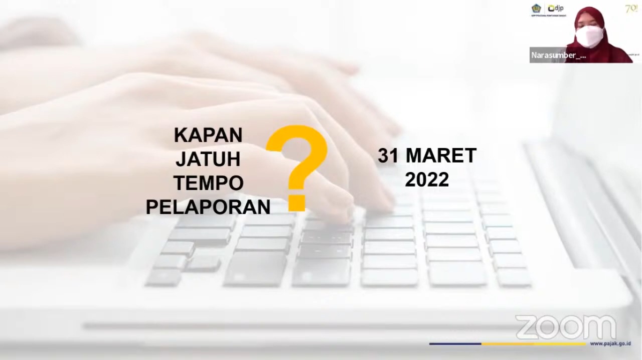 Kantor Pelayanan Pajak (KPP) Pratama Pontianak Barat mengadakan Kelas Pajak dengan tema “Cara Lapor SPT Tahunan Non Karyawan” melalui Zoom Clouds Meeting dan siaran langsung Youtube di ruang Multimedia KPP Pratama Pontianak Barat, Pontianak, Kalimantan Barat (Senin, 14/02).