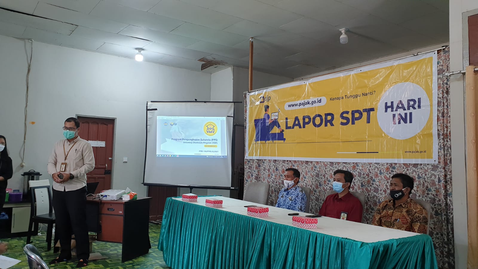 Kantor Pelayanan, Penyuluhan, dan Konsultasi Perpajakan (KP2KP) Sangatta dan Kantor Pelayanan Pajak (KPP) Pratama Bontang melaksanakan sosialisasi Surat Pemberitahuan (SPT) Tahunan di aula Rumah Jabatan Kecamatan Kaubun, Kab. Kutai Timur (Kamis, 17/02). Kegiatan yang diikuti oleh 40 peserta terdiri dari Bendahara Pemerintah dan Aparatur Sipil Negara (ASN) Kecamatan Kaubun.