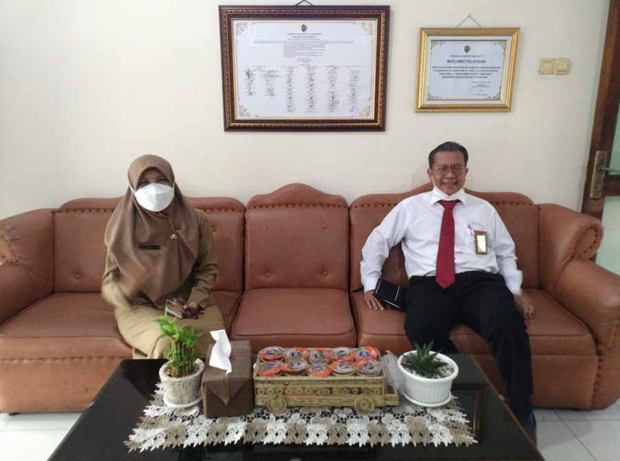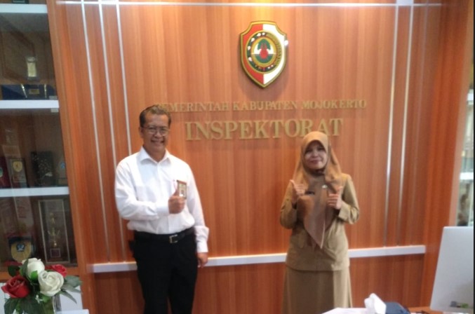 Kepala Kantor Pelayanan, Penyuluhan, dan Konsultasi Perpajakan (KP2KP) Mojosari Rahmat Basuki bersama Kepala Kantor Pelayanan Pajak (KPP) Pratama Mojokerto Syaiful Rakhman melakukan kunjungan ke Inspektorat Kabupaten Mojokerto di Jl. R.A Basuni No.19c, Sooko, Kabupaten Mojokerto (Senin, 13/6).