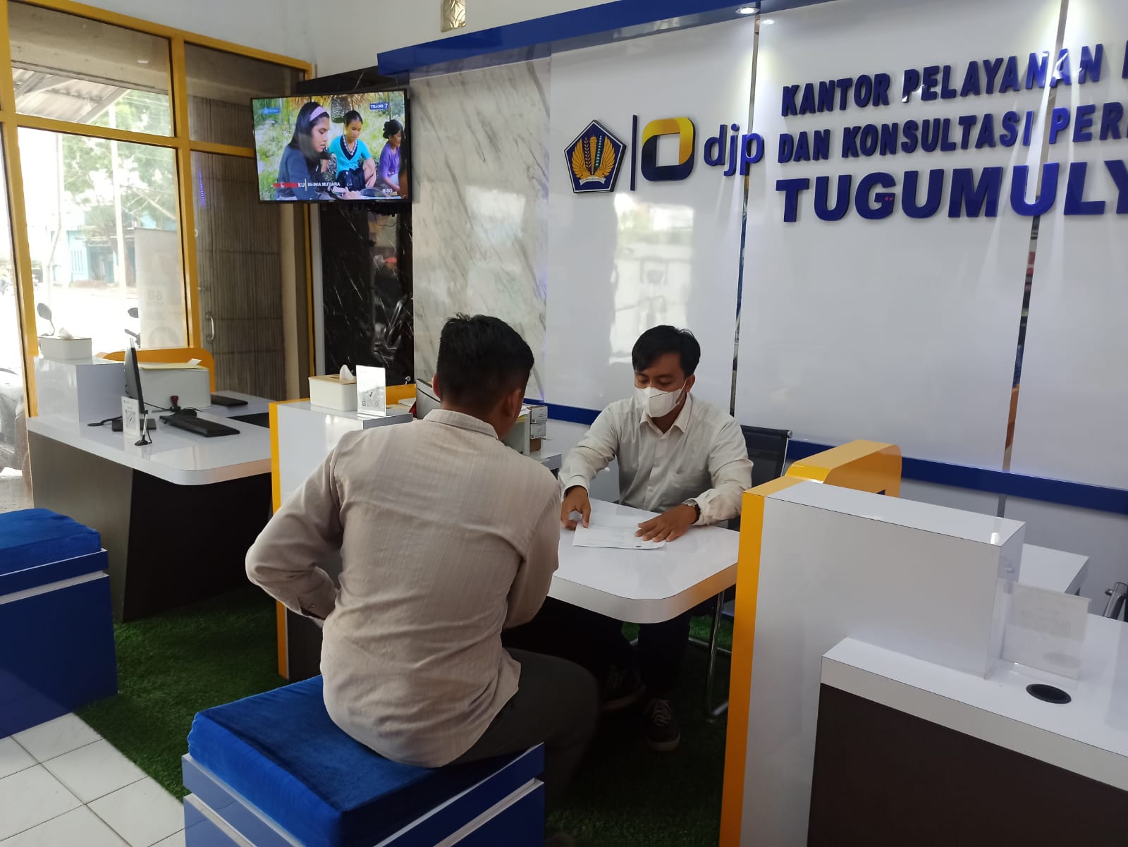 Kantor Pelayanan, Penyuluhan, dan Konsultasi Perpajakan (KP2KP) Tugumulyo melaksanakan kegiatan edukasi perpajakan secara perorangan atau One on One sebagai bentuk pelaksanaan edukasi perpajakan kepada wajib pajak, Tugumulyo, Musi Rawas, Sumatera Selatan (Jumat, 23/6). Kegiatan edukasi one-on-one ini dilaksanakan di ruang pelayanan KP2KP Tugumulyo dari bulan Mei hingga bulan Juni tahun 2023.