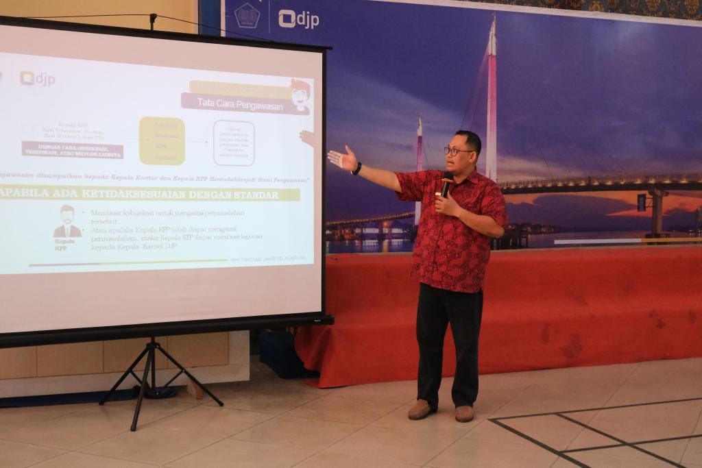 Penyuluh Pajak, Didi Perdana Kesuma, menyampaikan standar pelayanan yang harus dipenuhi oleh KPP Pratama Jambi Telanaipura.